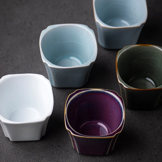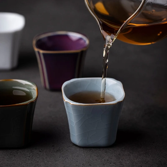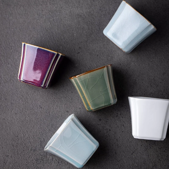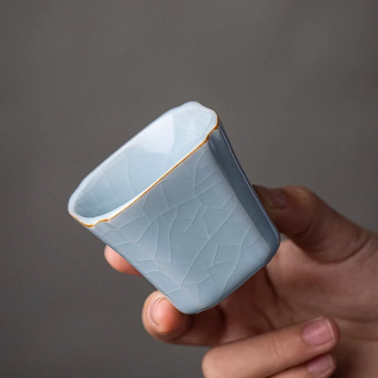 - Unique Design Features: The 1.7oz (50ml) small capacity perfectly fits the Gongfu tea tradition of slow, small-sip tasting. The softly curved square shape fits comfortably in your hand, while the delicate gold rim adds a touch of elegant luxury to your tea table. Selected styles feature natural crackle glaze (ice crackle texture), a beloved traditional Chinese ceramic technique. Over time, your crackle glaze cup will develop unique personalized patina from tea staining, making it a one-of-a-kind piece to collect and enjoy.