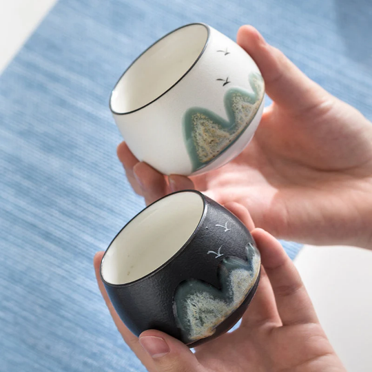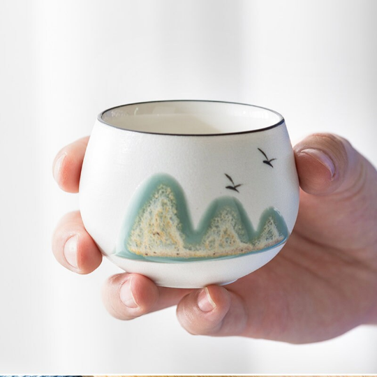 The tea cup made of high quality KaoLin Clay, and with beautiful mountain and bird, It is a perfect cup for tea lovers, you can used it drink tea every day!