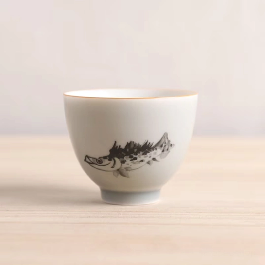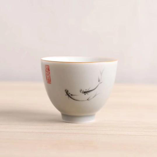 Hand-Decorated Chinese Ceramic Fish Tea Cup: Traditional Art for Your Tea Ritual