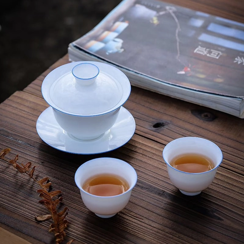 - Elegant Minimalist Design: A crisp bright white body paired with a thin delicate blue rim creates a perfect balance of traditional Chinese aesthetics and modern minimalist style. This design complements any tea set, from traditional Gongfu tea arrangements to contemporary home and office decor.