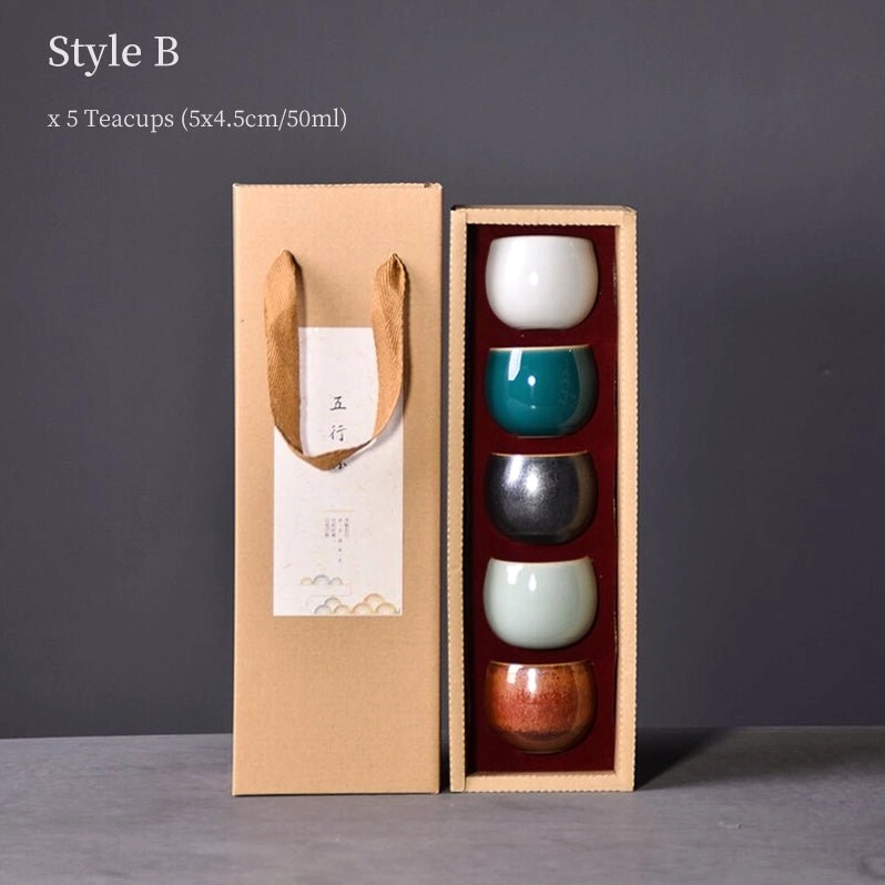 In traditional Chinese culture, the Five Elements (Wu Xing: Wood, Fire, Earth, Metal, Water) represent the fundamental forces of nature and balance. This 5-piece tea cup set integrates this timeless philosophy: each cup features a unique color representing one element, bringing harmony and positive energy to your tea drinking ritual.
