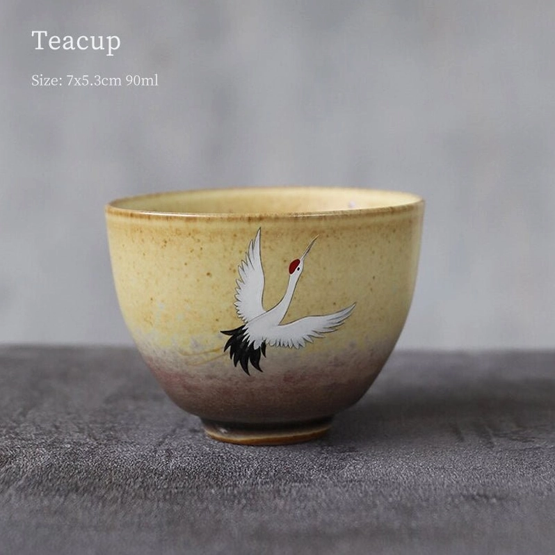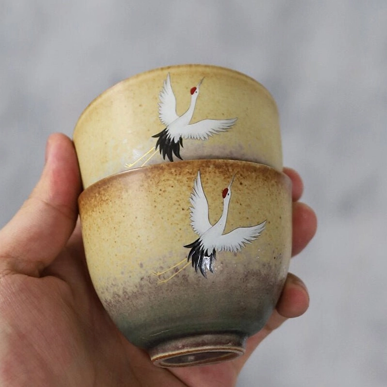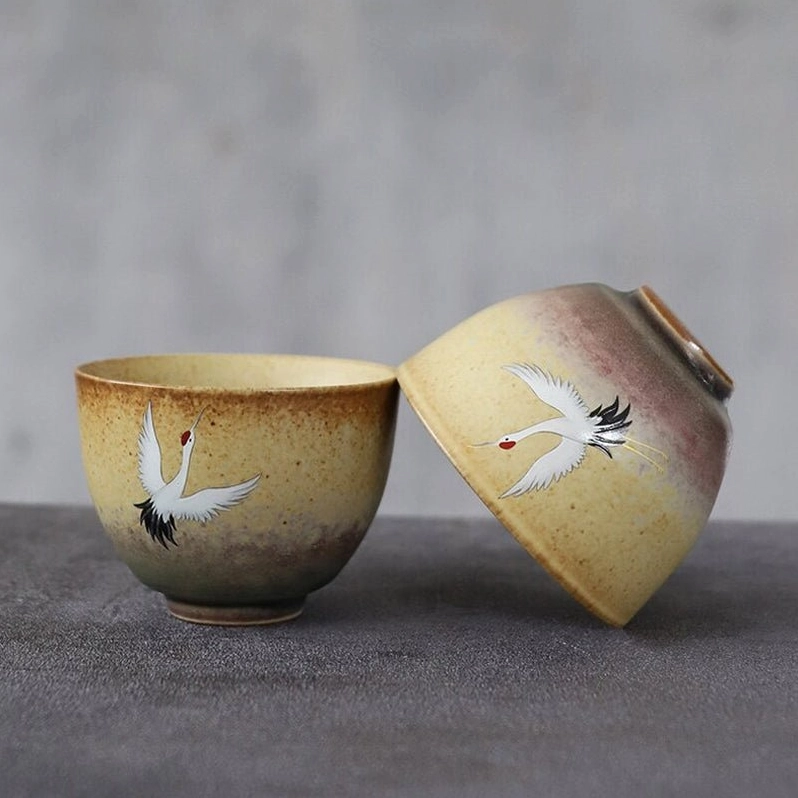 Hand-Painted Ceramic Crane Tea Cup 90ml – Chinese Gongfu Teacup