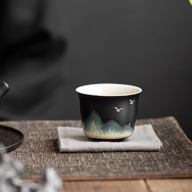 Mountain landscape art is one of the most iconic motifs in Chinese culture, representing peace, harmony with nature, and the quiet wisdom of a contemplative life. The minimalist ink-wash style mountain and flying bird design on this cup evokes the serene vibe of traditional Chinese scroll painting, turning your daily tea time into a gentle, mindful retreat from busy modern life.