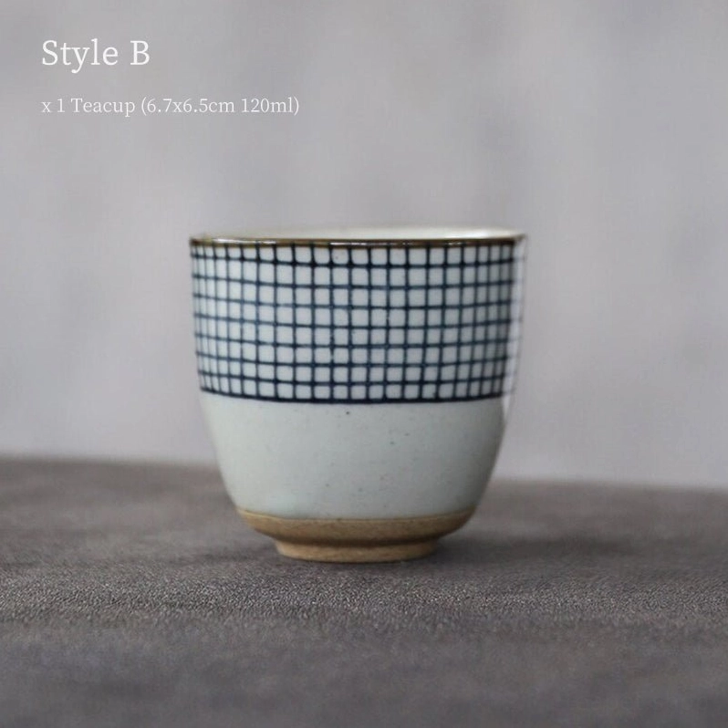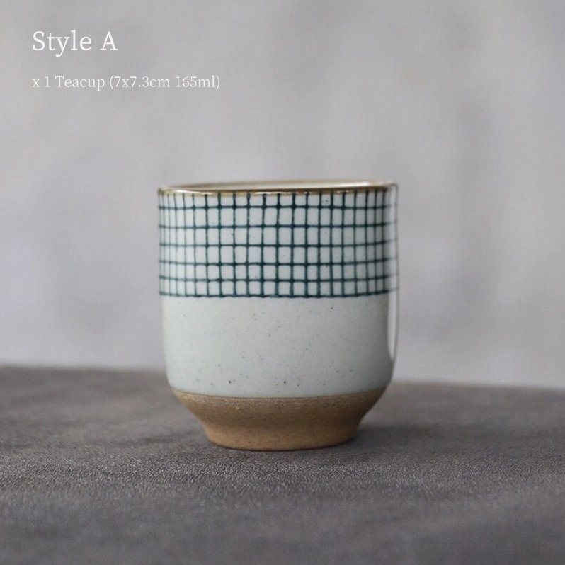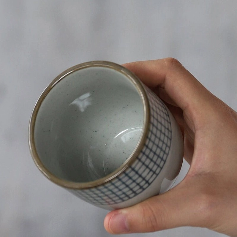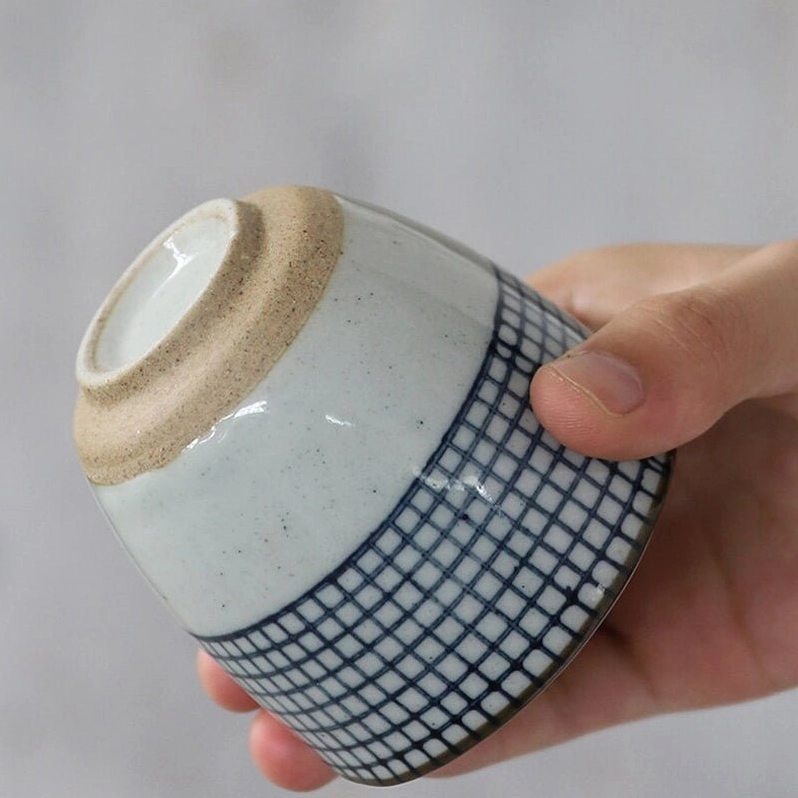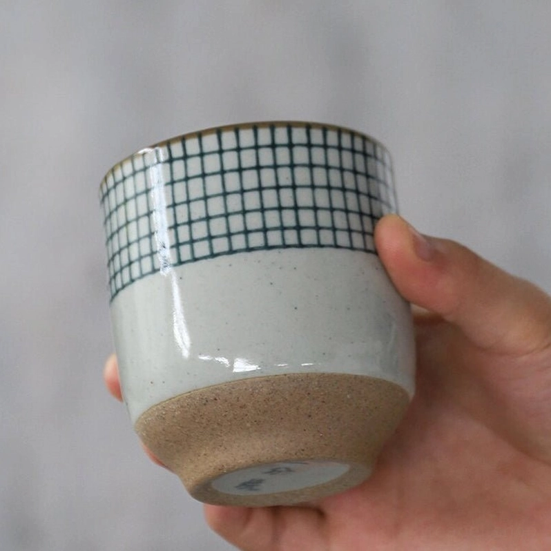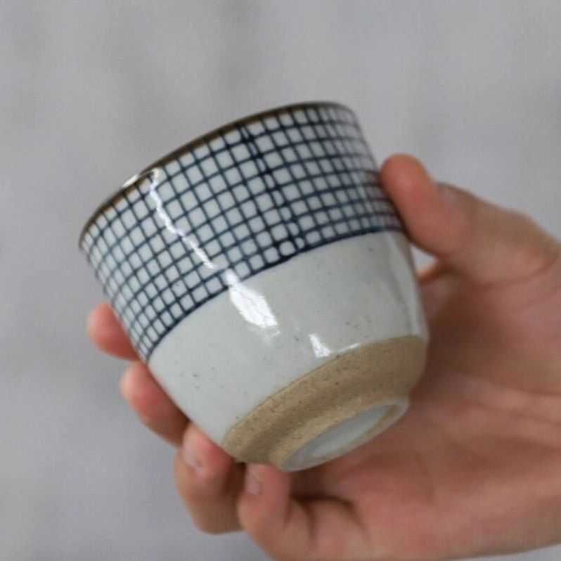 Handcrafted Checkered Japanese Ceramic Teacups for Authentic Tea Enjoyment