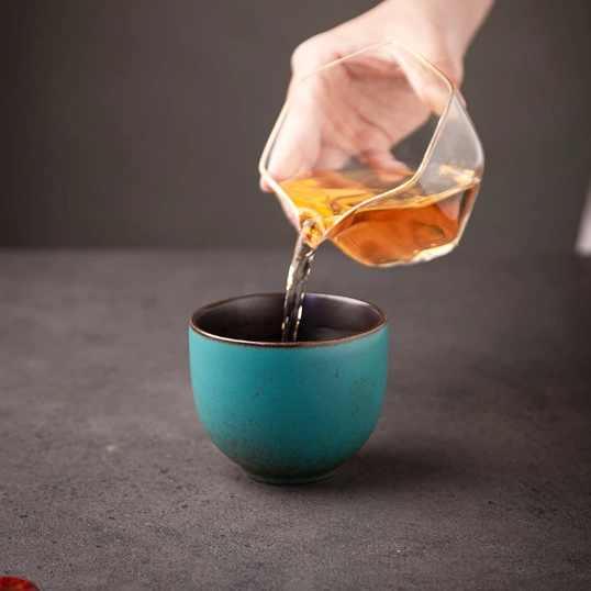 - Unique Natural Kiln Change Glaze: Every cup features a one-of-a-kind blue green base with natural brown textured patterns, no two pieces are exactly alike, giving your tea set a personal artistic touch