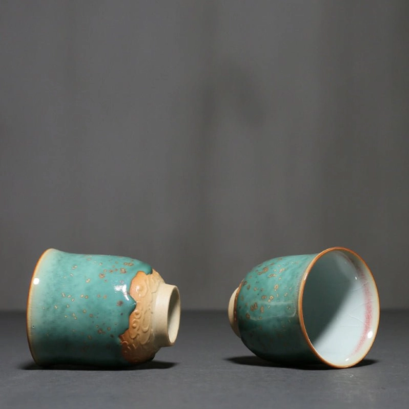 In Chinese culture, cloud patterns symbolize good fortune, peace, and smooth progress. This teacup features hand-carved cloud relief on the lower body, connecting thousands of years of Chinese tea culture to your daily routine. The soft celadon green body with scattered gold speckles paired with warm earthy trim on the rim and base creates a balanced, calming look that suits both traditional and contemporary home decor.