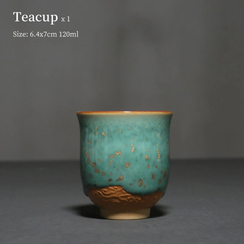 Experience traditional Chinese tea culture with this handcrafted 120ml ceramic teacup. Featuring unique cloud relief, green glaze with gold speckles, perfect for daily tasting or gifting.