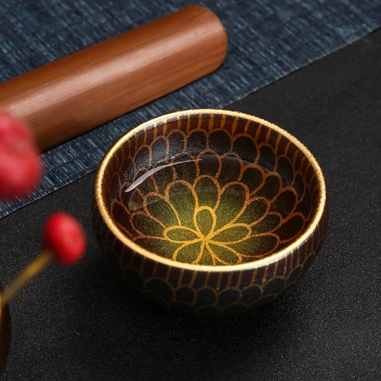 - Unique One-of-a-Kind Design: Features intricate gold petal-shaped patterns that shimmer in light, paired with iridescent deep green/purple base glaze – no two cups are exactly identical, making yours truly unique