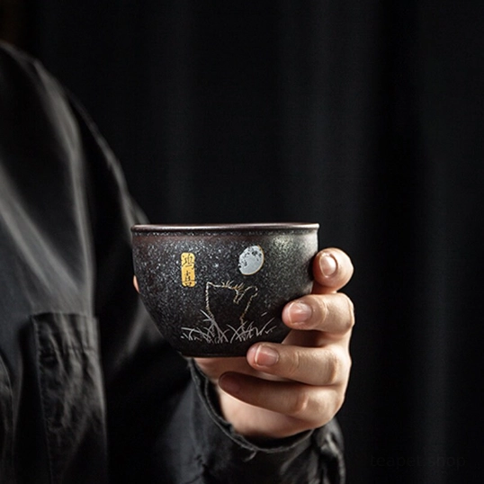 This handmade black ceramic gongfu tea cup is the perfect combination of traditional Chinese tea culture and modern whimsical design. Handcrafted from high-quality ceramic, this small tea cup is made for true tea lovers who appreciate both functionality and unique aesthetics.