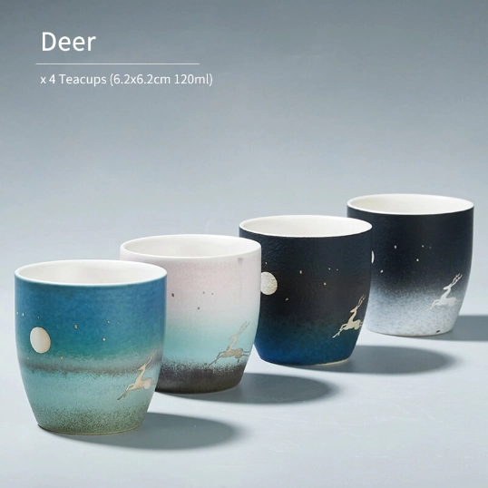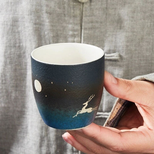 In Chinese culture, the deer (lu in Mandarin) is a deeply auspicious symbol that represents good fortune, longevity, prosperity, and peace. It is also associated with harmony with nature, aligning perfectly with the core philosophy of Chinese tea culture that emphasizes quiet reflection and connection to the natural world. Each cup’s delicate woodland deer and moon design evokes a peaceful night forest scene, bringing a sense of calm to every sip.