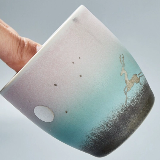 Discover Oriental Elegance: Handmade Deer Motif Ceramic Tea Cups