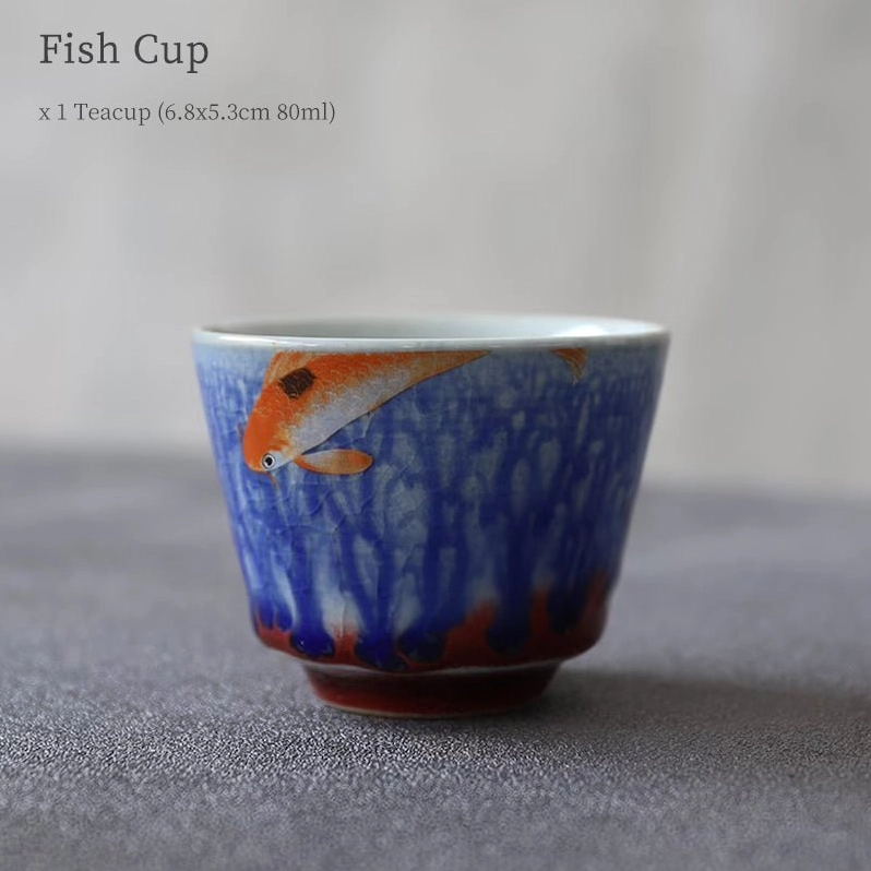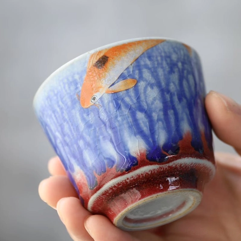 - Deer and fish pattern cups use kiln-changing glaze (yao bian you) technology, creating unique one-of-a-kind blue-red gradient glaze with natural flowing crystal textures. No two cups are identical, adding unique artistic value to your collection.