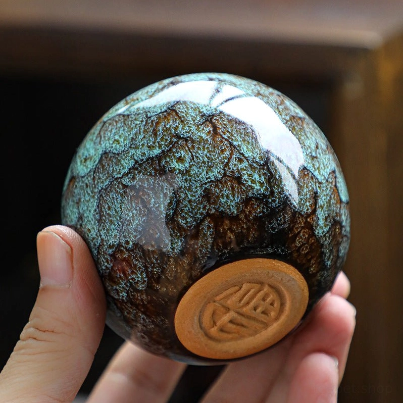Jian Zhan (literally “Jian Kiln bowl”) is a historic style of Chinese tea ware dating back to the Song Dynasty, revered by tea ceremony masters for its unique natural glaze effects and ability to enhance the flavor and aroma of fine tea. This modern handcrafted Jian Zhan teacup carries on this ancient tradition, blending classic Chinese ceramic craft with contemporary design.