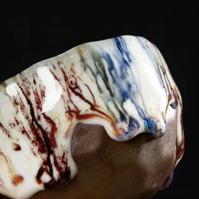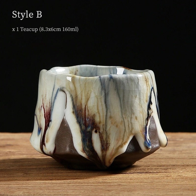 - Unique Kiln-Changed Glaze: Natural flowing glaze with blended blue, brown and warm earth tones, creating abstract organic patterns like landscape ink paintings. Every cup has its own distinct character.