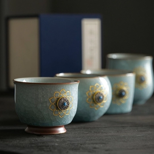 Ru Kiln is one of China’s most famous Five Great Kilns from the Song Dynasty, revered for its soft celadon glaze and subtle cracking texture that develops unique patina over years of use. The lotus pattern carved on this cup holds deep meaning in Chinese culture: the lotus symbolizes purity, prosperity, and peace, making this cup a meaningful gift as well as a functional tea vessel.