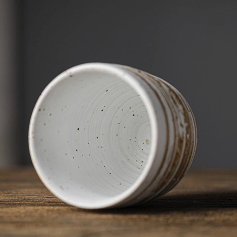 Each tea cup is made using traditional hand-thrown pottery technique, leaving one-of-a-kind natural striped texture on the surface. No two cups are exactly alike, just like every tea lover’s unique taste. This rustic, imperfect beauty is highly valued in Chinese and Japanese tea culture, representing harmony with nature and the art of wabi-sabi.