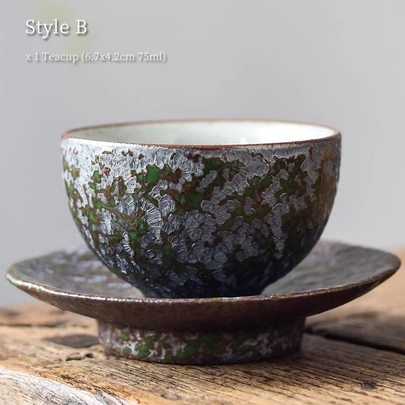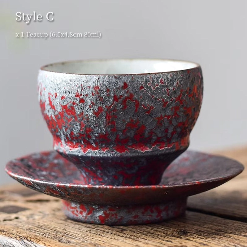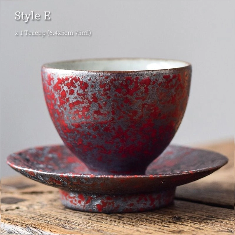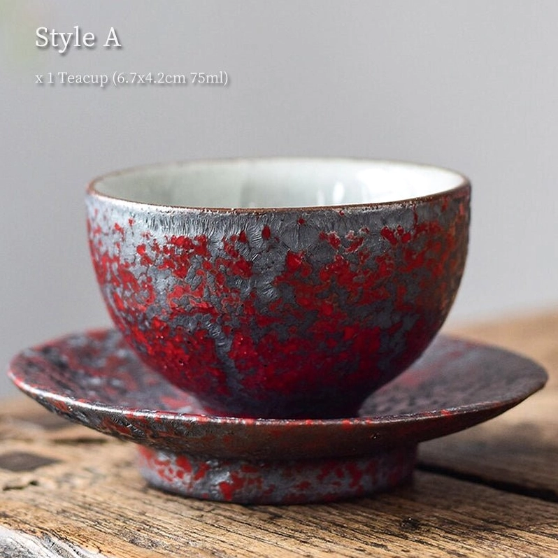 Rooted in thousands of years of Chinese ceramic culture, these handcrafted iron rust glaze porcelain tea cups and saucers bring artisanal charm and traditional tea culture to your daily brewing routine. Each piece features one-of-a-kind naturally mottled glaze patterns, no two sets are exactly alike — making your tea set truly unique to you.