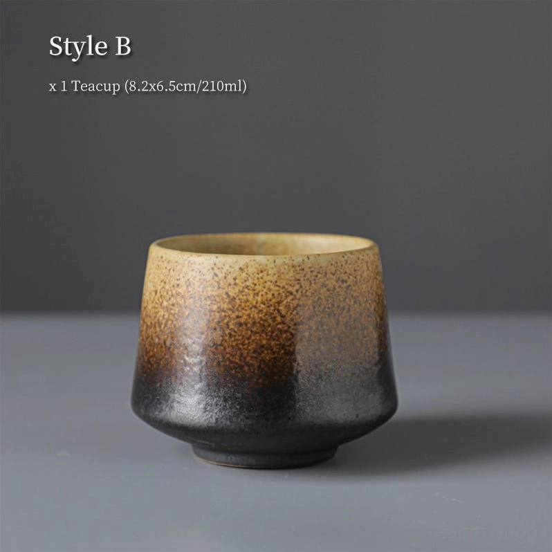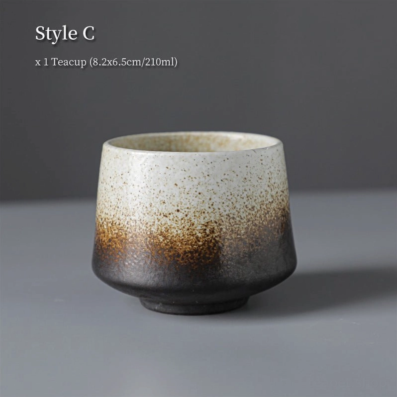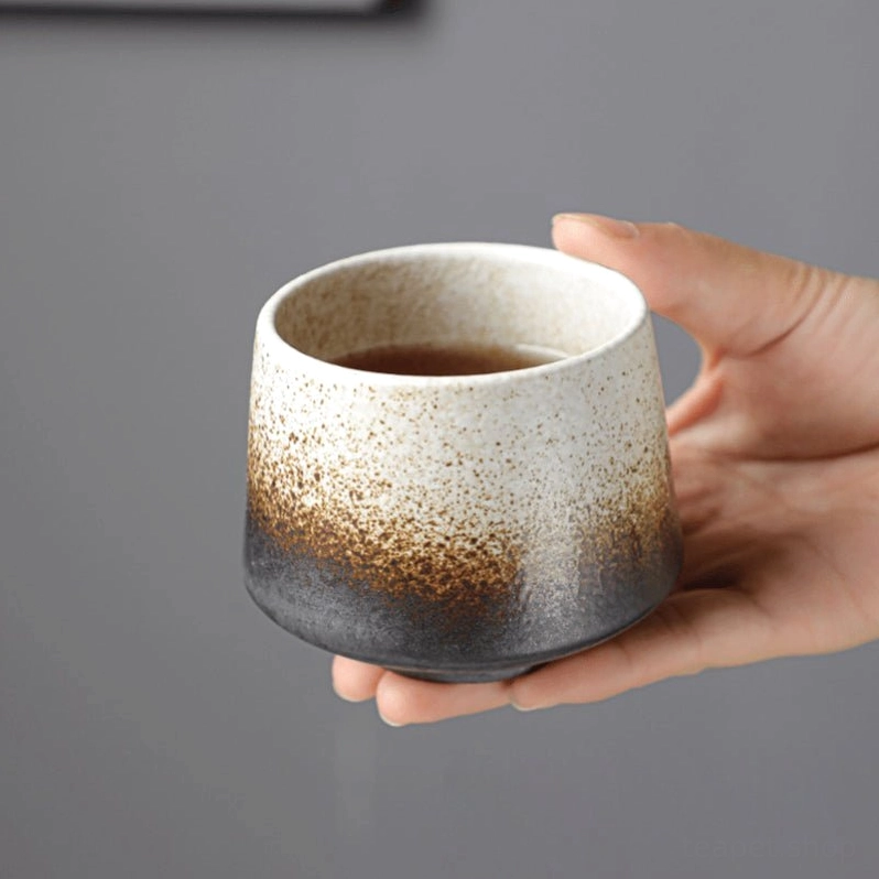 Rooted in traditional Chinese pottery craftsmanship, this vintage ceramic tea cup blends time-honored techniques with modern rustic aesthetics. Each cup features a one-of-a-kind gradient glaze and speckled texture that brings a warm, artisanal touch to your daily drinking ritual.
