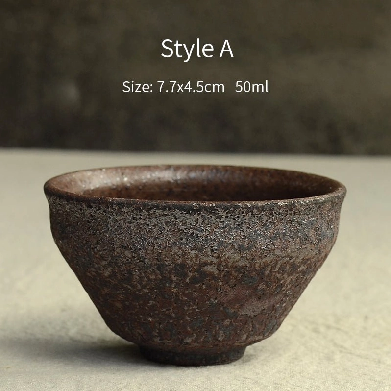 Handcrafted rustic vintage Chinese clay tea cups for traditional gongfu cha, multiple sizes & styles to elevate your tea tasting experience.