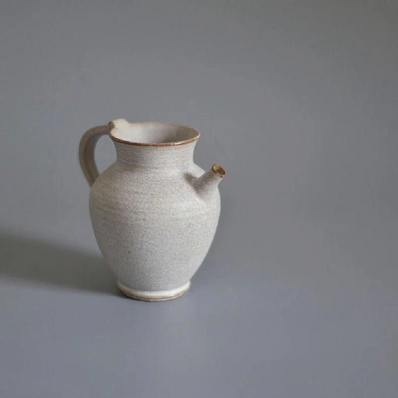 This 180ml white coarse ceramic tea pitcher features a naturally formed ice crackle glaze, a beloved traditional Chinese ceramic technique dating back over 1,000 years. Each pitcher has a one-of-a-kind crackle pattern that makes your tea set truly unique, adding timeless rustic charm to any tea space.