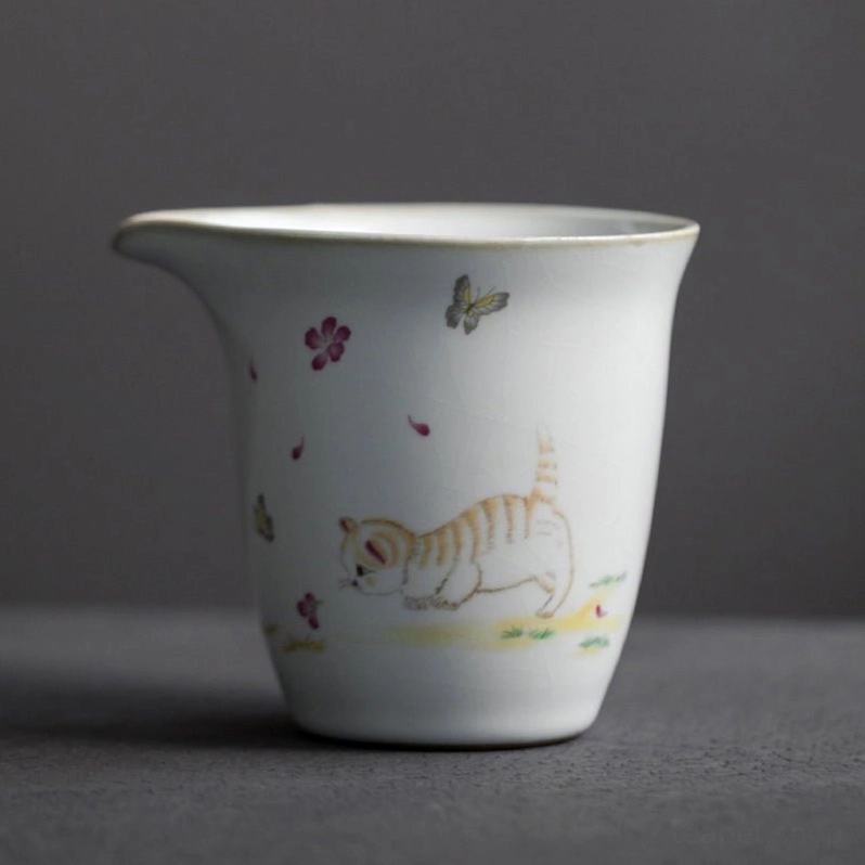 Adorable hand-patterned ceramic Gong Dao Bei (Chinese tea pitcher) for even tea serving. 200ml capacity, smooth flowing spout, perfect for daily tea tasting and tea lovers gifts.