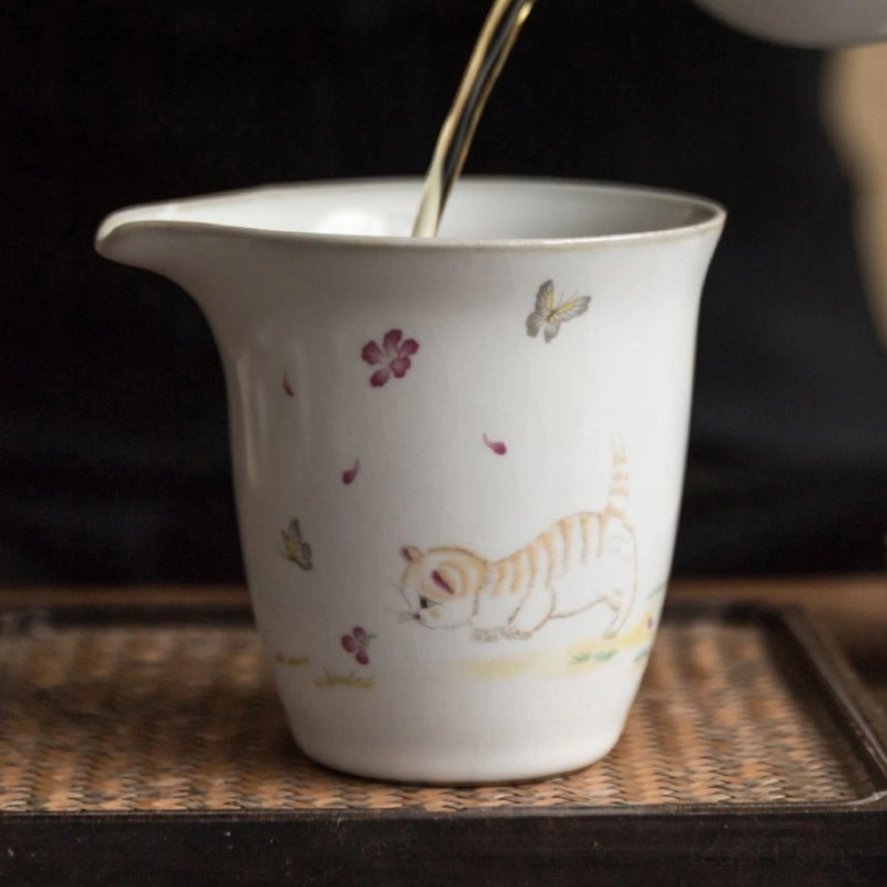 In traditional Chinese Gongfu Cha tea ceremony, a Gong Dao Bei (translated as ‘Justice Cup’ or tea pitcher) is an essential茶具 (chájù, tea ware) that creates equal tea for every guest. After steeping tea in your teapot, you pour the finished tea into this pitcher before dividing it into small teacups, ensuring every cup has the same smooth, balanced flavor. This cute cat design blends traditional function with modern playful style for your daily tea ritual.