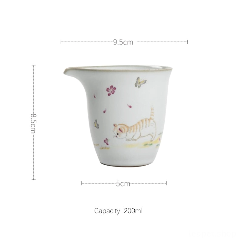 200ml Cute Cat Ceramic Gong Dao Bei | Hand-Patterned Chinese Tea Pitcher