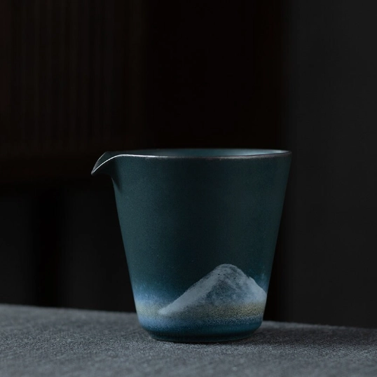 A Gong Dao Bei (fairness pitcher) is an essential part of authentic gongfu tea ceremony, designed to evenly distribute brewed tea into individual tasting cups, ensuring every guest enjoys the same rich flavor and consistent aroma. This handcrafted ceramic Gong Dao Bei blends traditional tea culture with artistic Chinese ink wash mountain design, making it both a practical tool and a beautiful addition to any tea collection.