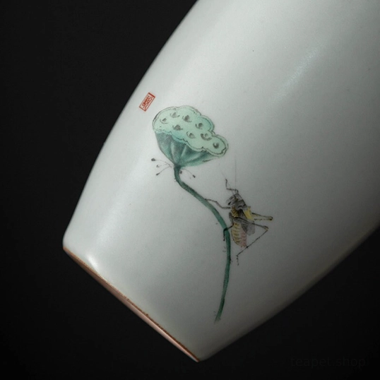 Adorned with a hand-drawn lotus seed pod and insect motif accented with a traditional red seal stamp, this piece brings timeless natural Chinese symbolism to your tea practice: in Chinese culture, the lotus represents purity, harmony, and good fortune, making it as meaningful as it is beautiful.