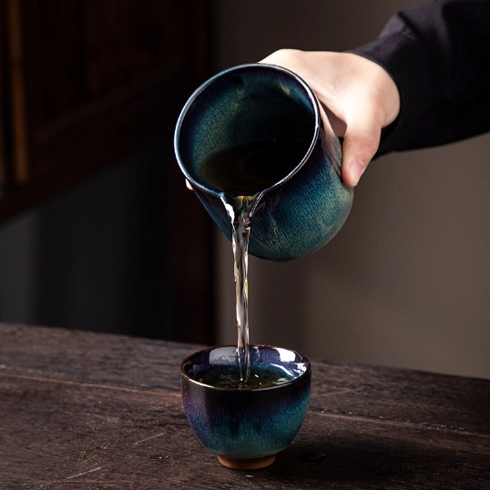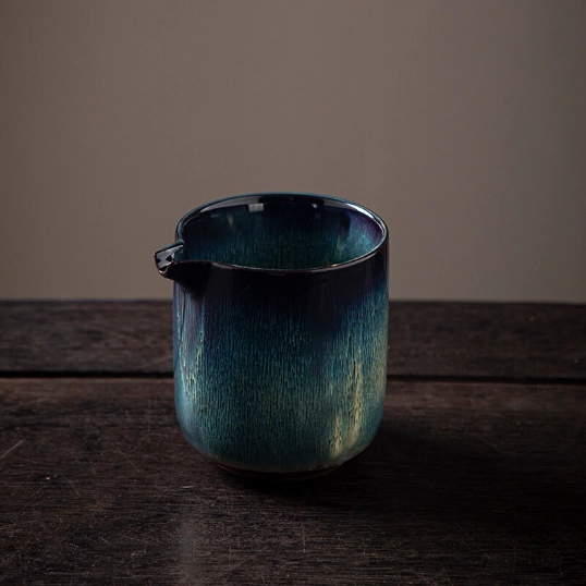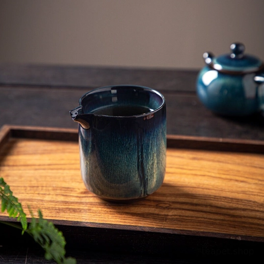 - One-of-a-Kind Glaze Finish: Every Jian Zhan ware is unique thanks to traditional kiln transformation. This pitcher features a stunning gradient glaze shifting from deep blue-black to rich teal with natural flowing textures, no two pieces are exactly alike.
