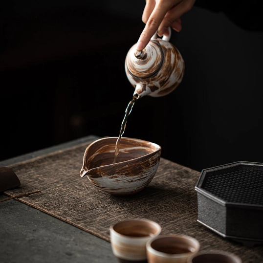 - Unique Textured Design: Features a natural brown wood-grain inspired finish with rustic hand-brushed texture, bringing a warm, organic vibe to any tea table. The simple, ergonomic shape fits comfortably in your hand for easy pouring.