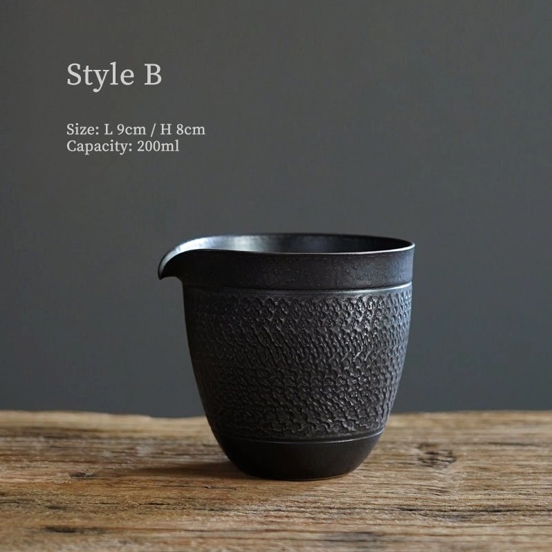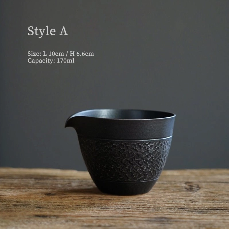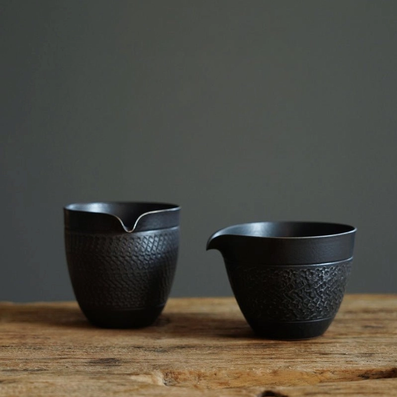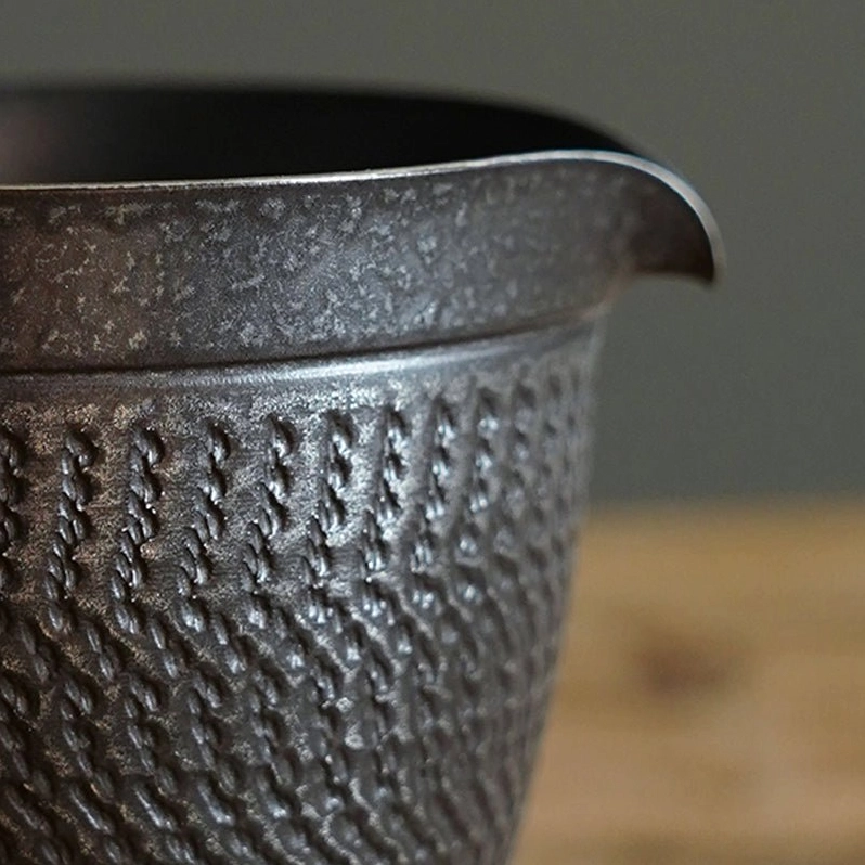 This beautiful Gong Dao Bei blends traditional tea utility with modern minimalist design. Crafted from high-fired ceramic with a unique matte black iron-like metallic finish and embossed textured surface, it offers a luxe, understated look that fits any tea space or home decor.