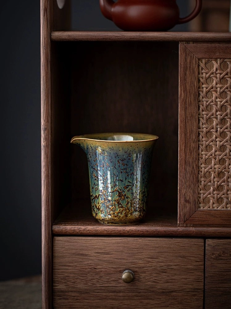 In traditional Chinese gongfu tea ceremony, the kiln-transformed fairness cup (also called gongdao bei or tea pitcher) is an essential part of every tea set. After brewing tea in your teapot, you pour all brewed tea into this pitcher to equalize the strength and flavor of every serving before pouring into individual teacups. This traditional tool ensures every guest gets the same rich, balanced taste, embodying the Chinese value of fairness in tea sharing.