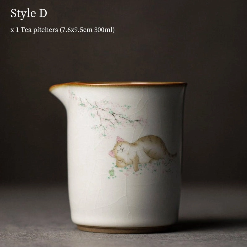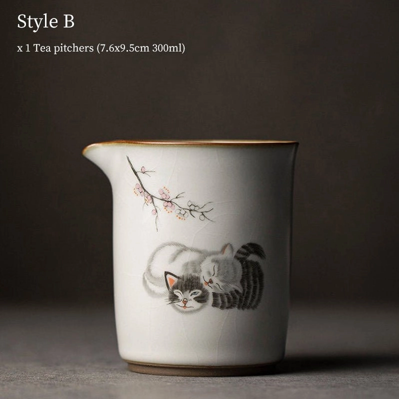 This beautiful tea pitcher blends traditional Chinese ceramic craft with modern whimsy, featuring adorable hand-drawn cat illustrations in a range of sweet poses: from napping with cherry blossoms to playing among flower branches. It’s the perfect blend of cozy cuteness and traditional tea culture, ideal for cat lovers and modern tea enthusiasts alike.