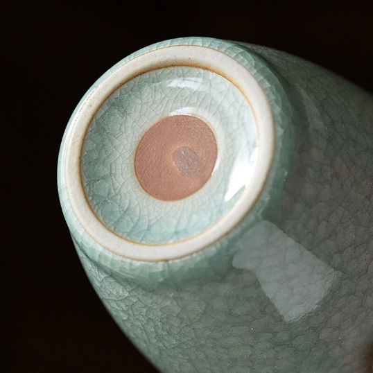 This tea pitcher draws inspiration from China’s legendary Ru Kiln, one of the five famous kilns of the Song Dynasty, celebrated for its simple elegant forms and soft celadon glazes. Our handcrafted piece features a stunning natural ice crackle (craquelure) glaze pattern. Every crackle line is unique, making your pitcher a one-of-a-kind work of ceramic art that adds timeless traditional charm to any tea setup.