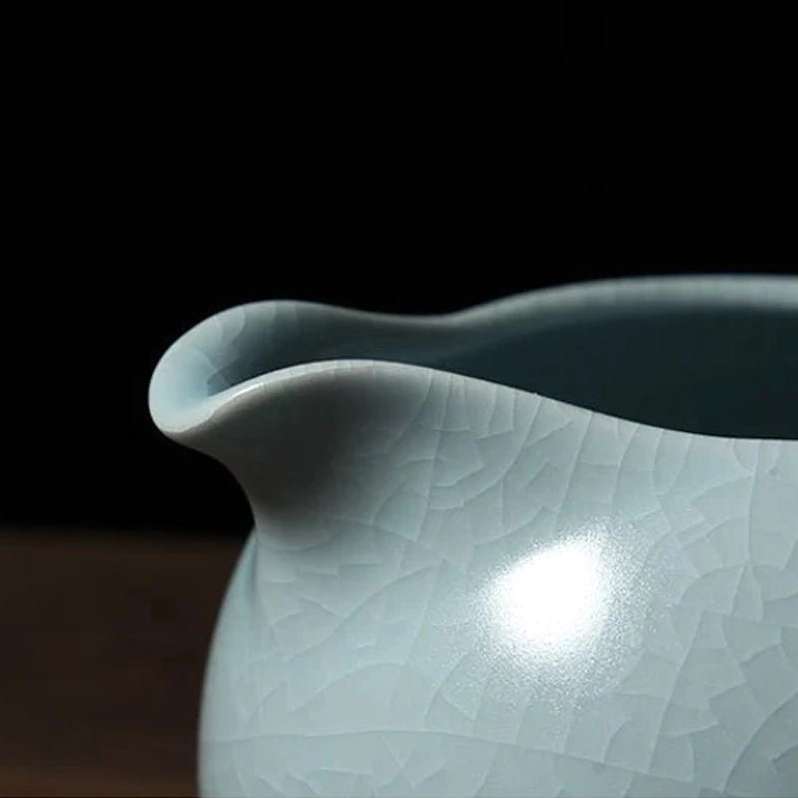This 200ml sky blue Ru Kiln Gong Dao Bei combines over 1,000 years of traditional Chinese ceramic craft with modern ergonomic design, making it perfect for casual daily use and formal gongfu tea ceremonies alike.