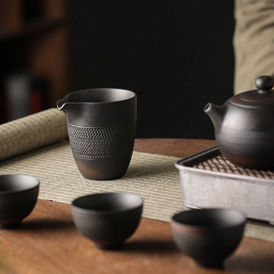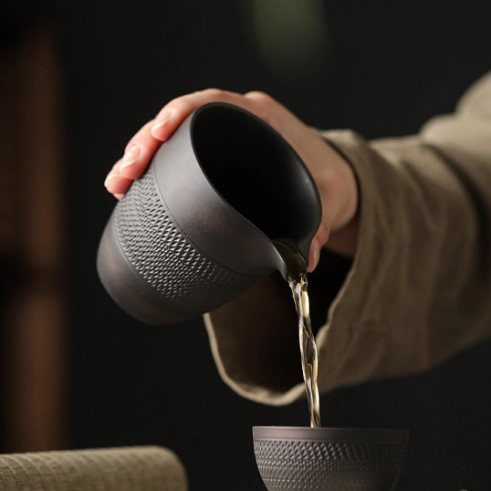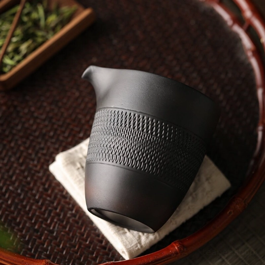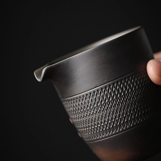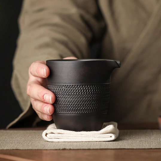 With its deep, matte black finish and modern textured design, this Gong Dao Bei blends traditional Chinese tea culture with contemporary minimalist style. It pairs perfectly with matching Zisha teapots and teacups from this collection to create a cohesive, elegant tea set that complements both traditional Asian decor and modern minimalist home interiors.