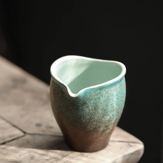This 180ml (6.1oz) handcrafted ceramic Gong Dao Bei features a one-of-a-kind crackle glaze finish with a gradient from soft vintage green to deep earthy brown, creating natural, organic texture that gets more beautiful with time. We offer two minimalist, functional silhouettes to match your tea style: