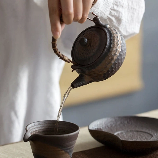 Rooted in centuries of East Asian tea craftsmanship, this antique-style Japanese ceramic teapot blends timeless aesthetic design with practical daily use. Inspired by the wabi-sabi philosophy of finding beauty in imperfection, its hand-hammered texture and warm, earthy tones bring a calm, authentic cultural touch to any tea experience.
