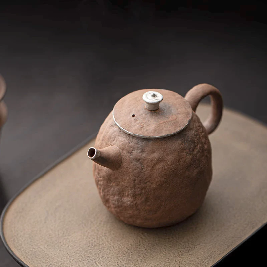 The tea pot made of Coarse Pottery and 999 silver, The teapot made from Jingdezhen, It is a perfect teapot for tea lovers, you can brewing gongfucha in the teapot.