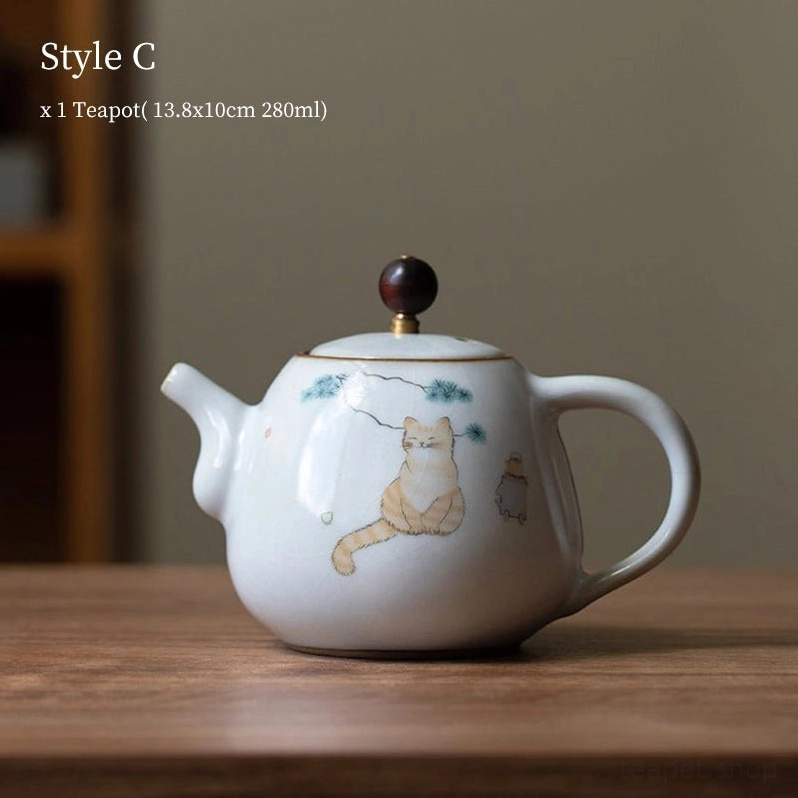 1 x Cute Cat Themed Ceramic Chinese Teapot (280ml / 9.5oz)