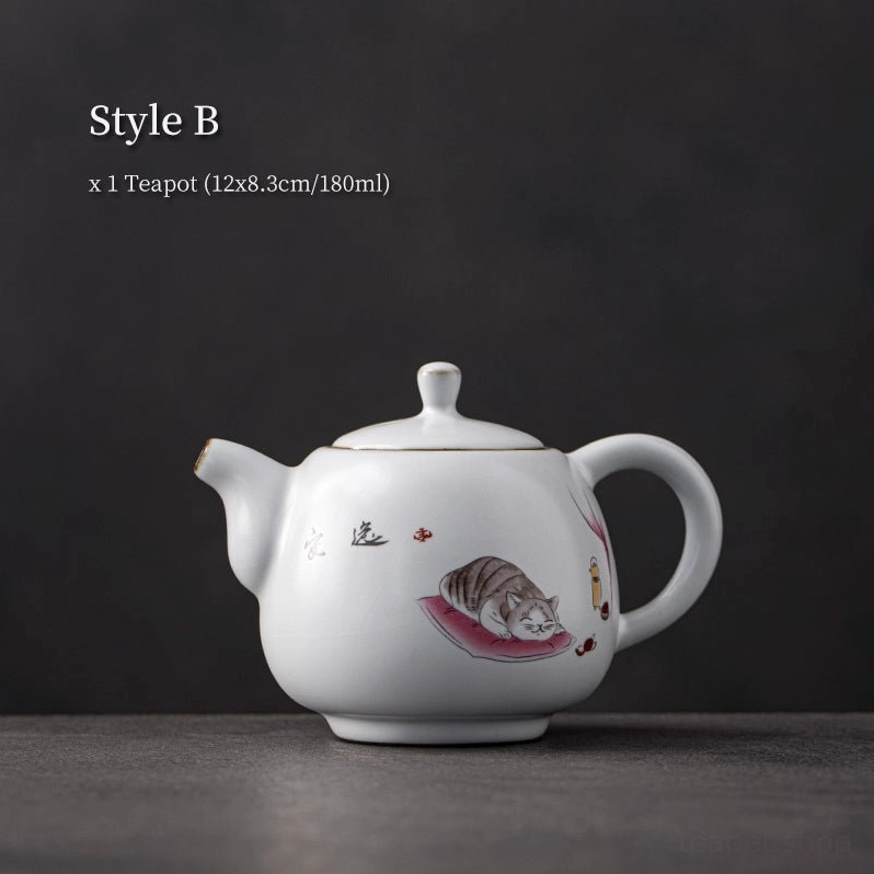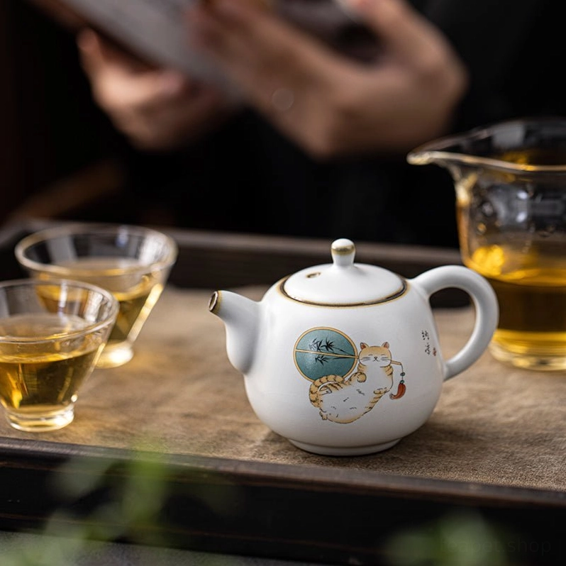 Bring a touch of cozy, lucky charm to your daily tea ritual with this one-of-a-kind cute cat ceramic teapot. Blending traditional Chinese tea culture with modern playful design, this small teapot is as functional as it is charming, ideal for solo sipping or intimate small tea gatherings.