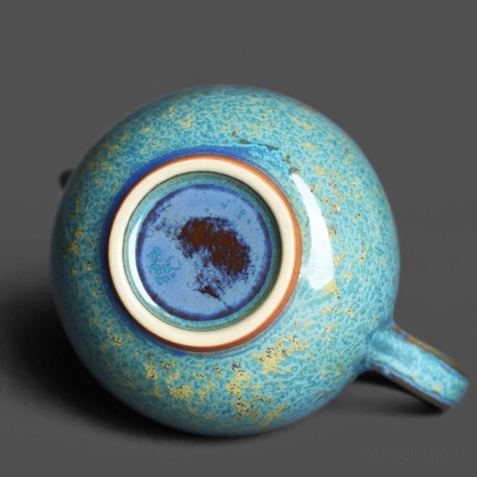 Kiln-change (yao bian) is a traditional Chinese ceramic firing technique that creates unpredictable natural color gradients and textures during high-temperature firing. Originating over 1,000 years ago in Chinese porcelain making, this technique turns every teapot into a small work of art. The combination of deep green-blue, soft purple gradients, and delicate gold speckles on this teapot reflects the Chinese philosophy of harmony with nature — embracing unique natural beauty in every creation.