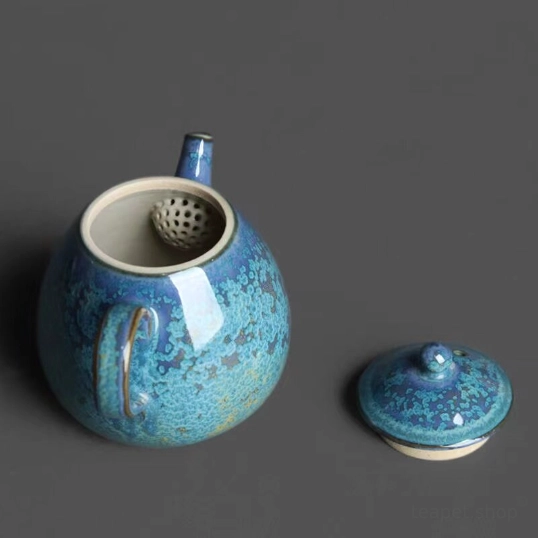 This stunning 170ml green blue teapot blends traditional Chinese ceramic craftsmanship with modern artistic design, bringing an elevated tea tasting experience to your daily routine and gatherings. Every piece features a one-of-a-kind kiln-change glaze finish, meaning no two teapots are exactly alike — yours will always be uniquely yours.