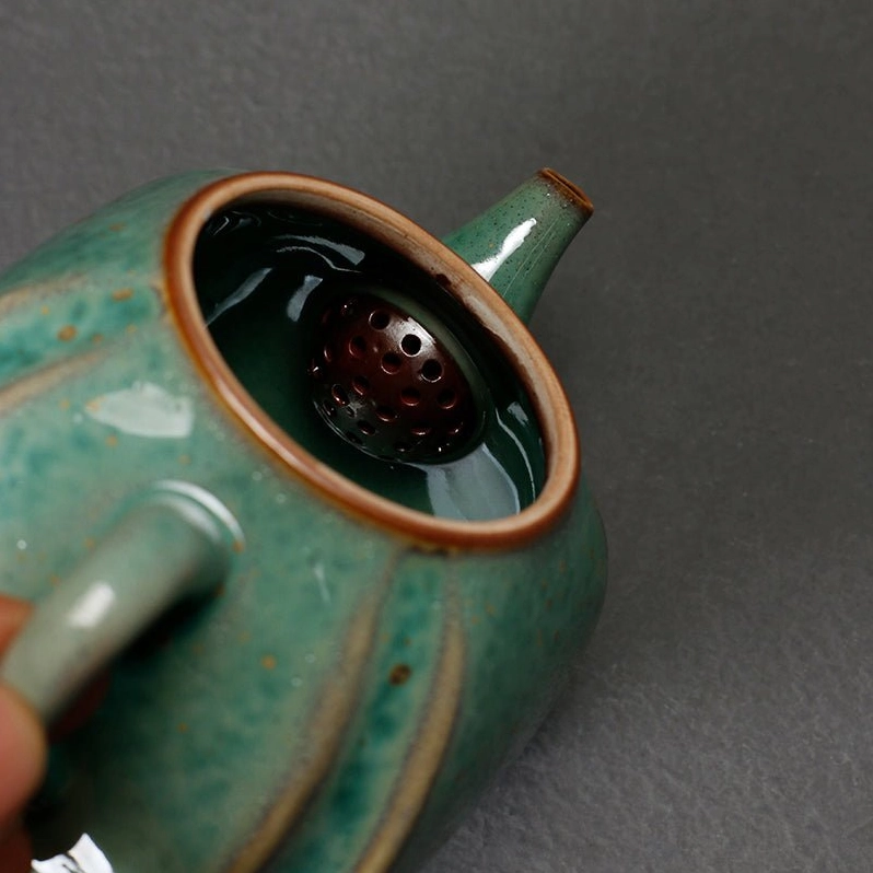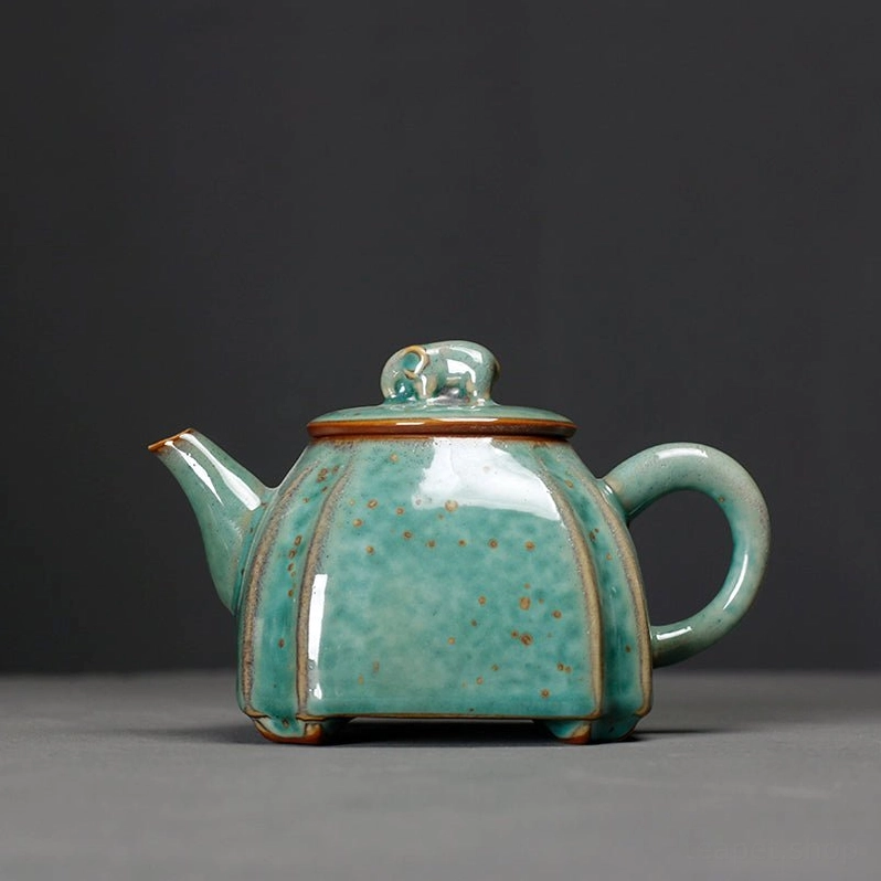 - Unique Artistic Design: Combines structured square shaping with soft curved lines, finished with a elegant sage green glaze dotted with golden speckles for a warm vintage look that stands out from ordinary teapots.