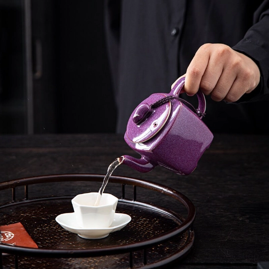 • Unique Kiln-Changed Purple Glaze: Each teapot features one-of-a-kind subtle color variations and natural texture from the kiln firing process, no two pieces are exactly alike. The deep rich purple glaze with soft accent lines creates an elegant, luxurious look that stands out from ordinary plain teapots.