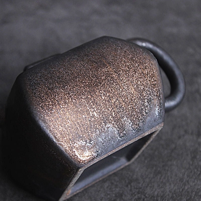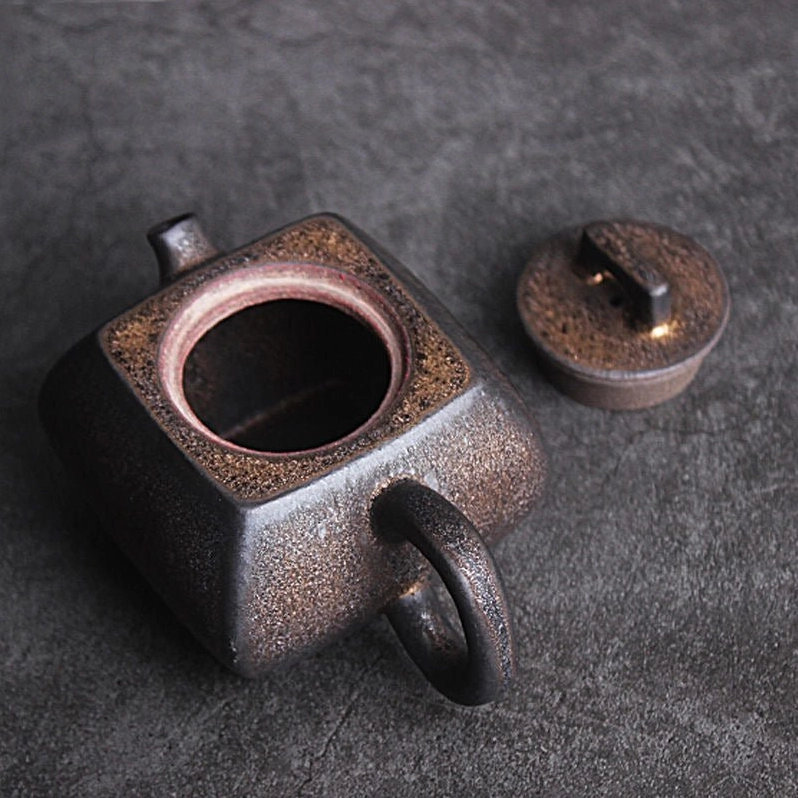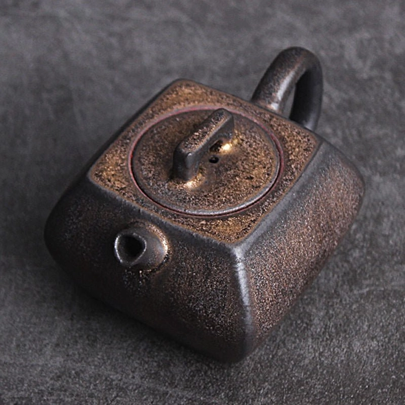 Boasting a one-of-a-kind textured finish with natural gilded and mottled dark brown tones, this teapot has an organic, aged look that gives it character and depth, no two pieces are exactly alike. Its square shape with soft rounded edges balances traditional Chinese teapot proportions with contemporary minimalism, making it a striking focal point for any tea table or countertop.