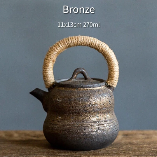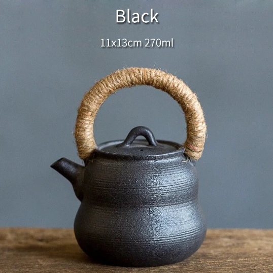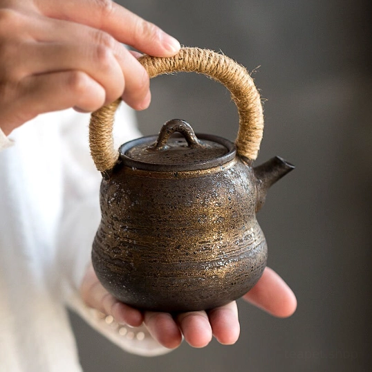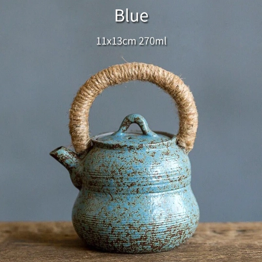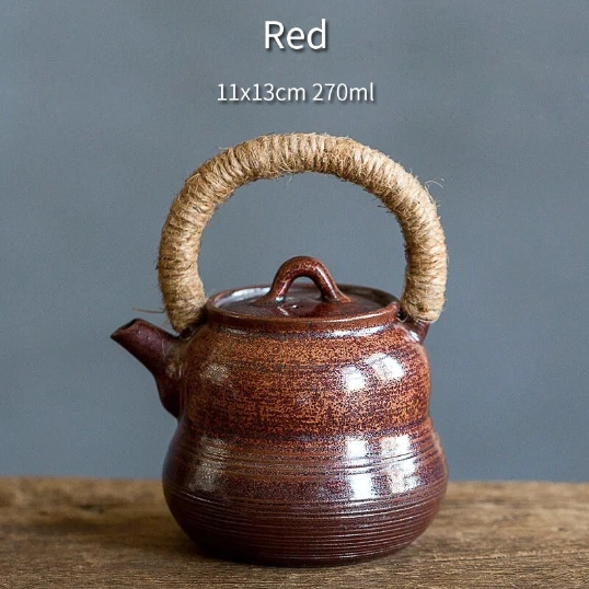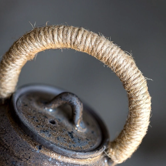 This teapot is crafted from high-fired durable ceramic, a classic material for Chinese tea ware that preserves the natural flavor and aroma of your tea better than plastic or metal alternatives. Each teapot features unique reactive glaze finishing, creating one-of-a-kind texture and color variations that highlight its handcrafted quality. The sturdy internal frame of the handle is wrapped in natural hemp, adding rustic charm and practical heat insulation for comfortable, safe handling.