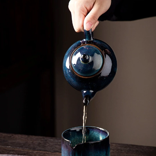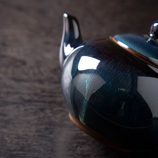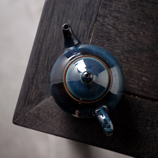 - Exclusive Kiln-Fired Glaze: This Jian Zhan teapot features a deep black-blue glaze with natural hare-fur silk-like streaks, created by traditional high-temperature kiln firing. The glaze develops subtle metallic sheen under light, adding an elegant, mystical focal point to any tea table.