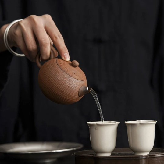 Clay tea pots are a cornerstone of Chinese tea culture, valued for thousands of years for their ability to retain heat and absorb tea oils, creating a richer, more flavorful brew with every use. This pot blends traditional hand-thrown pottery texture with modern functional design: the subtle hand-crafted rings on the clay body celebrate the artisanal process, while the silver spout trim adds a touch of understated elegance that fits both traditional and contemporary decor.